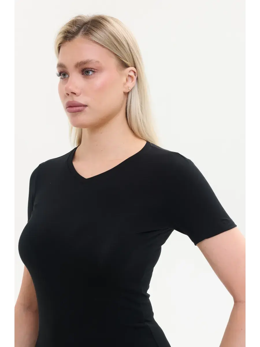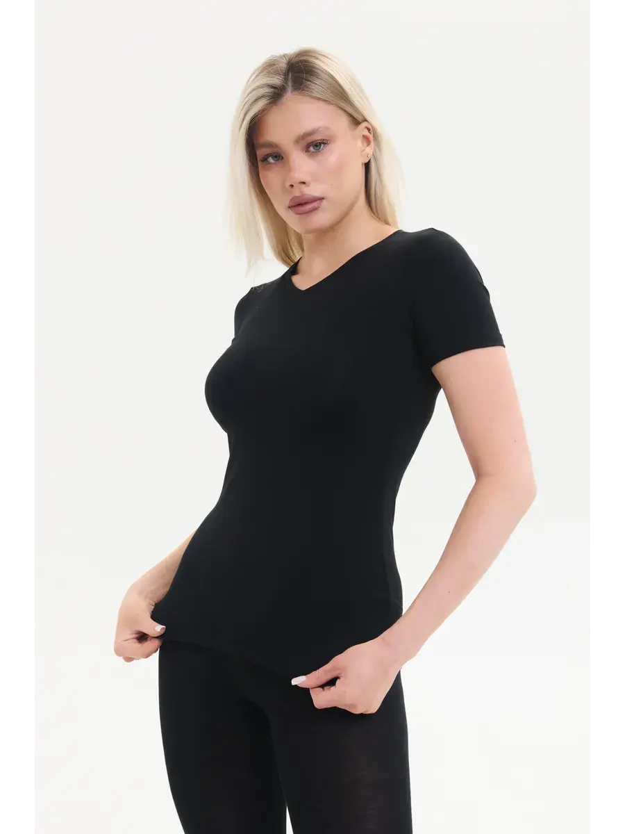 Благодаря своему универсальному дизайну с V-вырезом, эта футболка отлично подчеркивает линию шеи и создает женственный образ. Легкая и дышащая ткань из бамбука обеспечивает комфорт даже в жаркую погоду, а ее гипоаллергенные свойства делают ее идеальной для чувствительной кожи. Стильная и практичная летняя футболка легко сочетается с любыми вещами — будь то джинсы, юбки или спортивные штаны. Благодаря широкому размерному ряду, данная модель будет прекрасным выбором как футболка больших размеров.