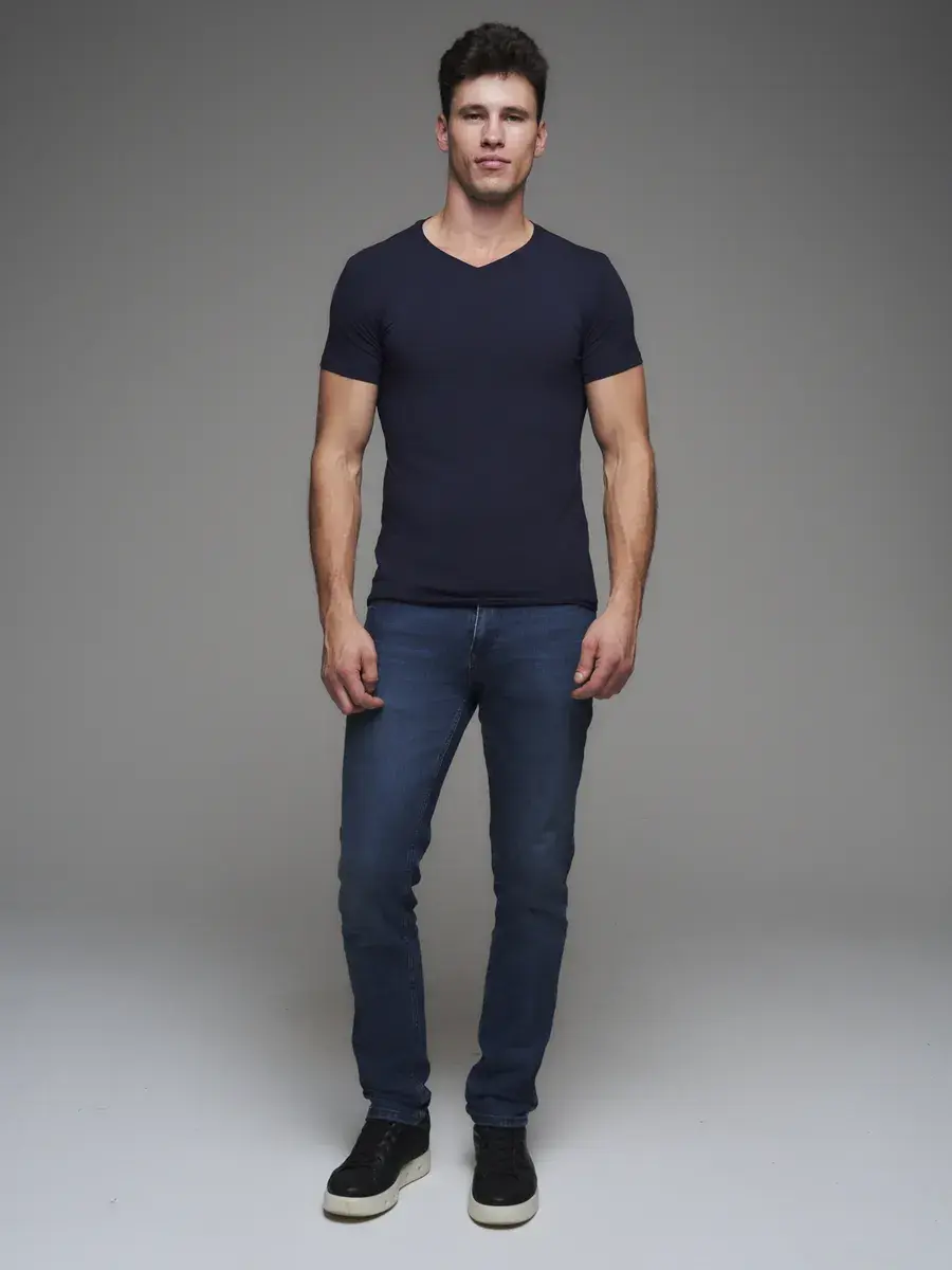 Эта футболка станет отличным решением для вашего гардероба и подарит комфорт в любое время года. Не упустите возможность обновить свой стиль с помощью этой практичной и стильной футболки с V-вырезом.