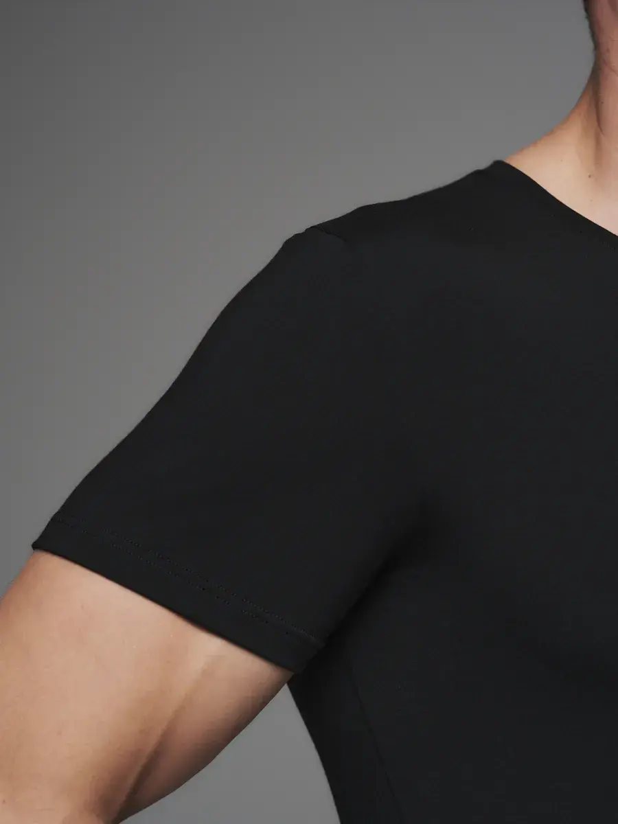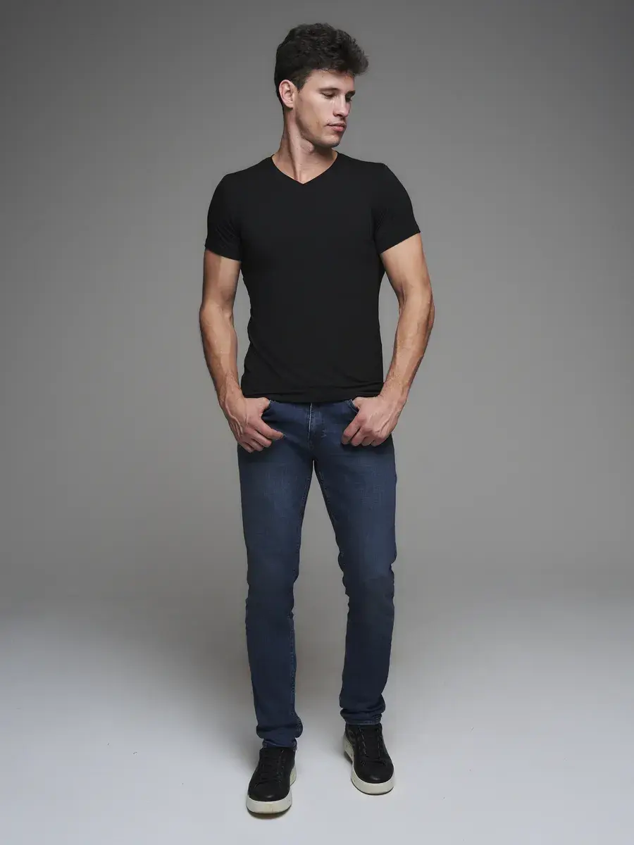 Эта футболка станет отличным решением для вашего гардероба и подарит комфорт в любое время года. Не упустите возможность обновить свой стиль с помощью этой практичной и стильной футболки с V-вырезом.