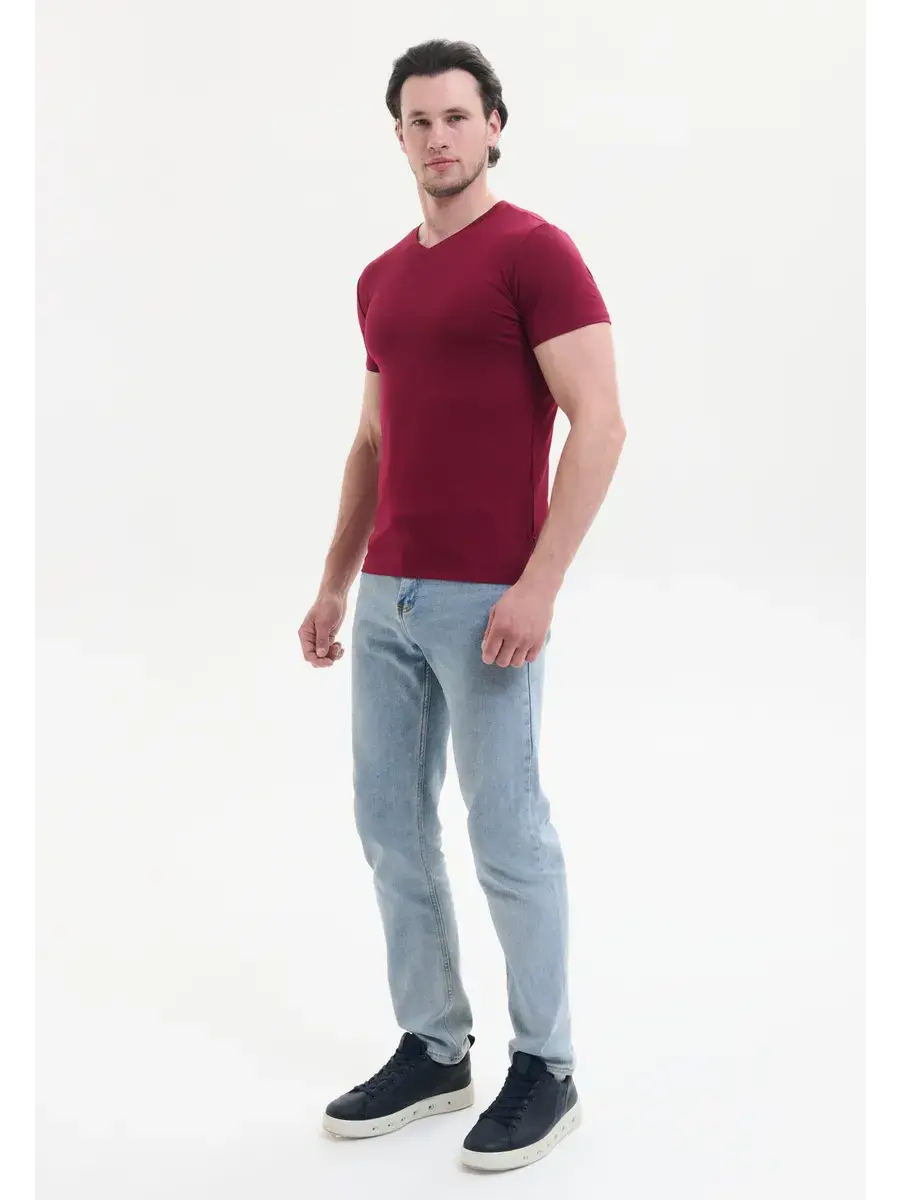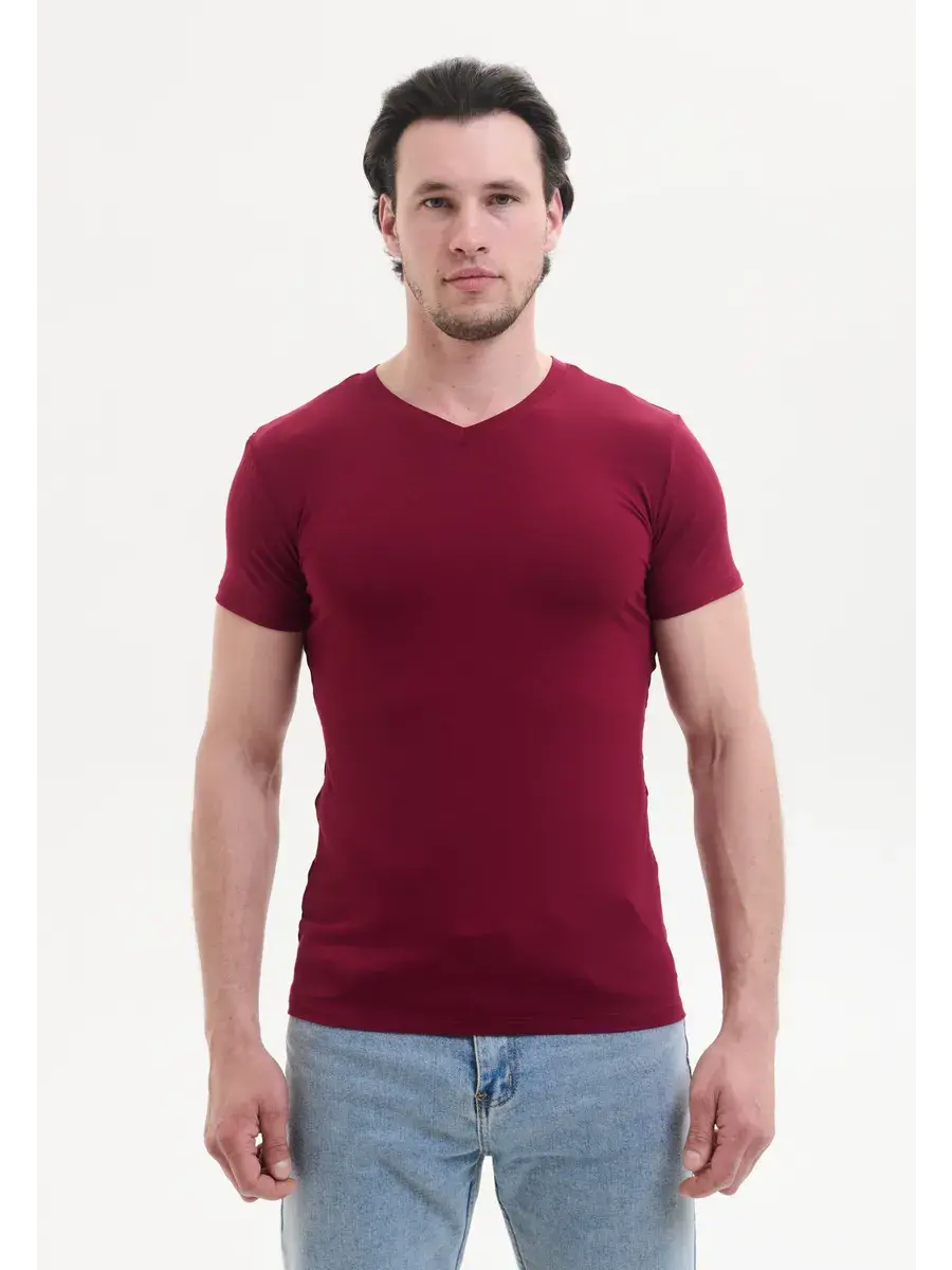 Однотонный цвет подходит для создания разнообразных образов — ее можно легко сочетать как с джинсами, так и с более формальной одеждой. V-вырез добавляет изысканности и делает эту футболку универсальным решением для любого случая — будь то встреча с друзьями, прогулка по городу или отдых на природе.