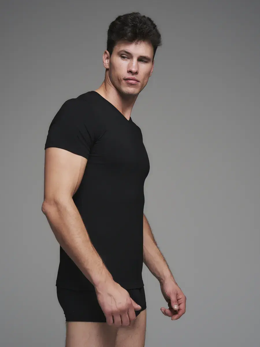 Комплект мужского белья станет идеальной основой гардероба любого мужчины. Базовая футболка с круглым вырезом прилегающего силуэта. Трусы-боксеры пошиты исходя из точного соблюдения анатомии. Конструкция "кармана" позволяет удобно, комфортно и легко разместить органы мужской половой системы так, что полностью исключается их перегрев. За 3-5 дней постоянного ношения решаются проблемы "неудобного положения" органов половой системы, кожного раздражения и потливости. В течение полугода достоверно повышается базовый уровень тестостерона. Оба изделия пошиты из натурального бамбукового полотна черного цвета. Они абсолютно дышащие, гигроскопичные, не стесняют движений, обеспечивают максимальный комфорт в ежедневной носке. При стирке не деформируются, не подвергаются усадке. Комплект мужского белья TACTILICA станет отличным подарком для мужчин.