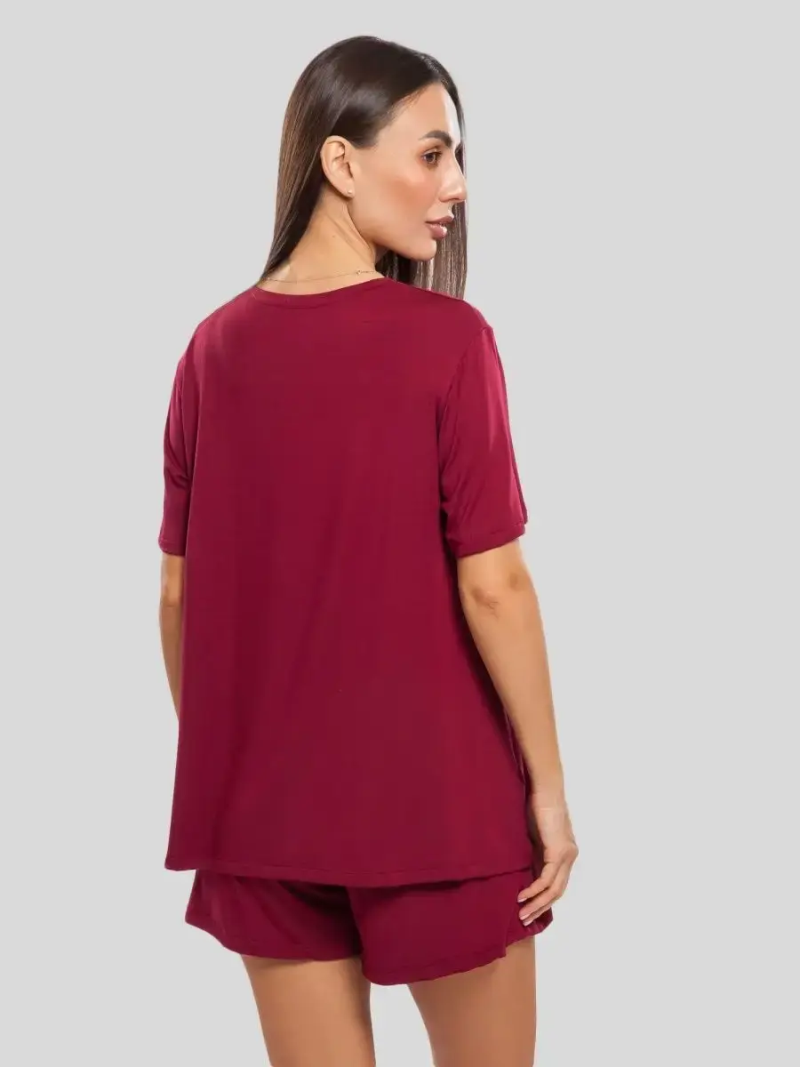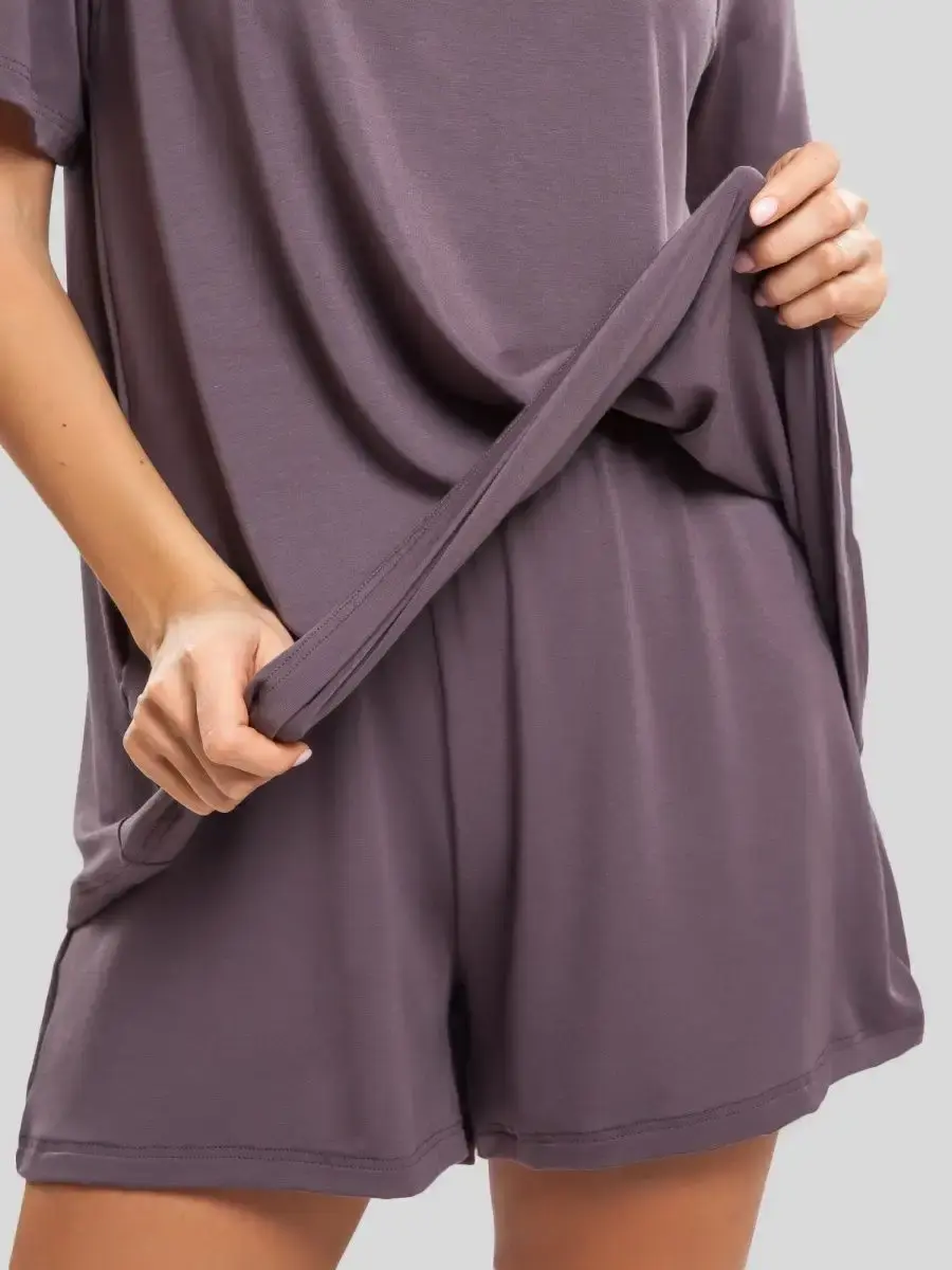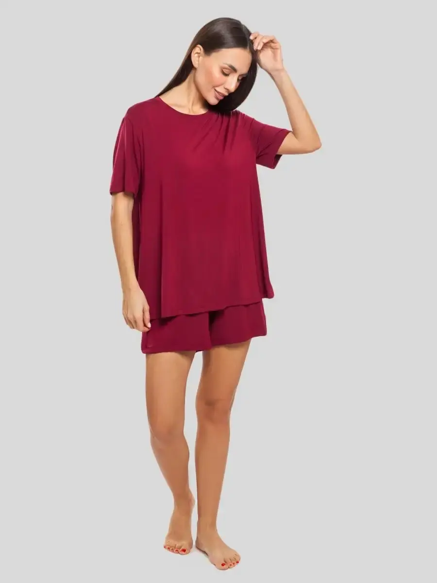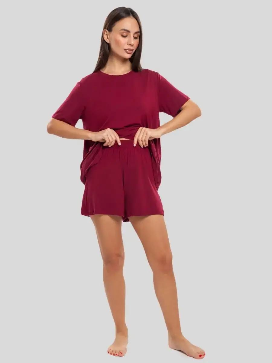Домашний костюм женский подарит вам непревзойденный комфорт и стиль в любое время. Комплект состоит из футболки оверсайз и шорт, выполненных из высококачественного бамбукового трикотажа премиального качества. Наш домашний костюм женский с шортами идеально подходит для создания расслабленного, но модного образа дома или на прогулке.
