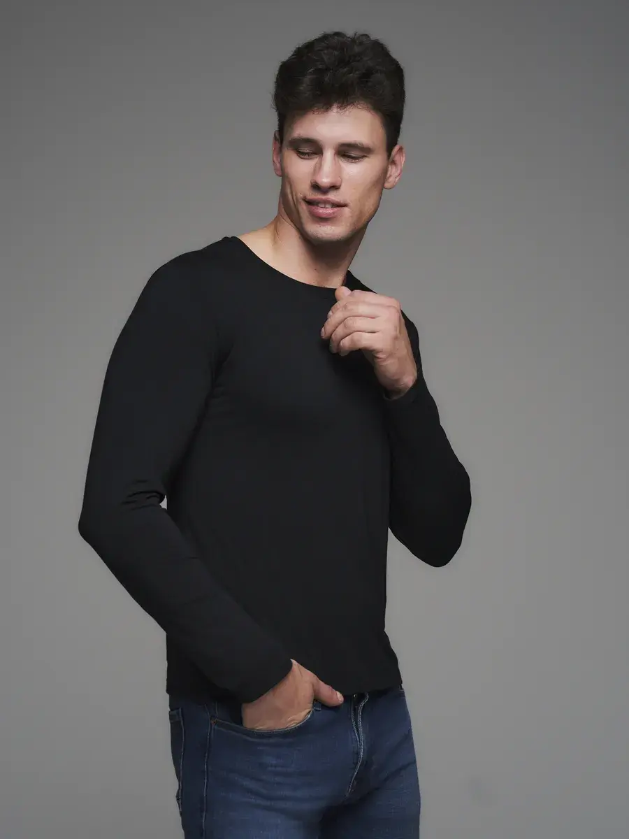 Представляем вашему вниманию лонгслив черный мужской от бренда TACTILICA – идеальный выбор для стильного и комфортного гардероба. Лонгслив с длинным рукавом пошит из бамбукового полотна, обеспечивающего отличную износостойкость и приятные тактильные ощущения. Лонгслив отлично сидит на фигуре и не сковывает движения, что делает его подходящим не только для повседневной носки, но и для спорта и активного отдыха.