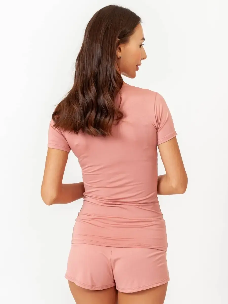 Без рисунка и с короткими рукавами, пижама с шортами от TACTILICA идеально подходит для домашнего использования, обеспечивая комфорт и свободу движений. Она предназначена для любой ростовки, что делает ее универсальной для широкого круга покупателей. Трикотажная фактура материала добавляет дополнительный уровень мягкости и удобства.