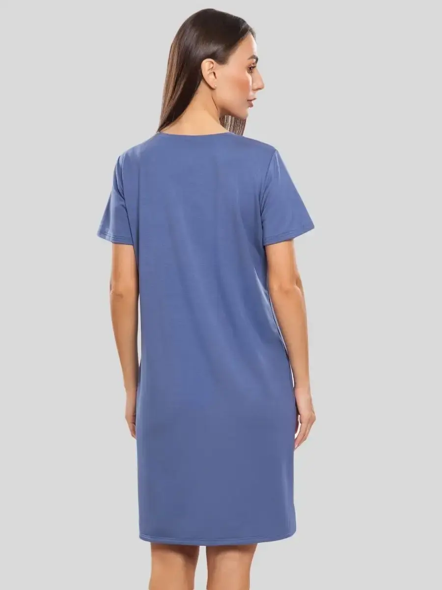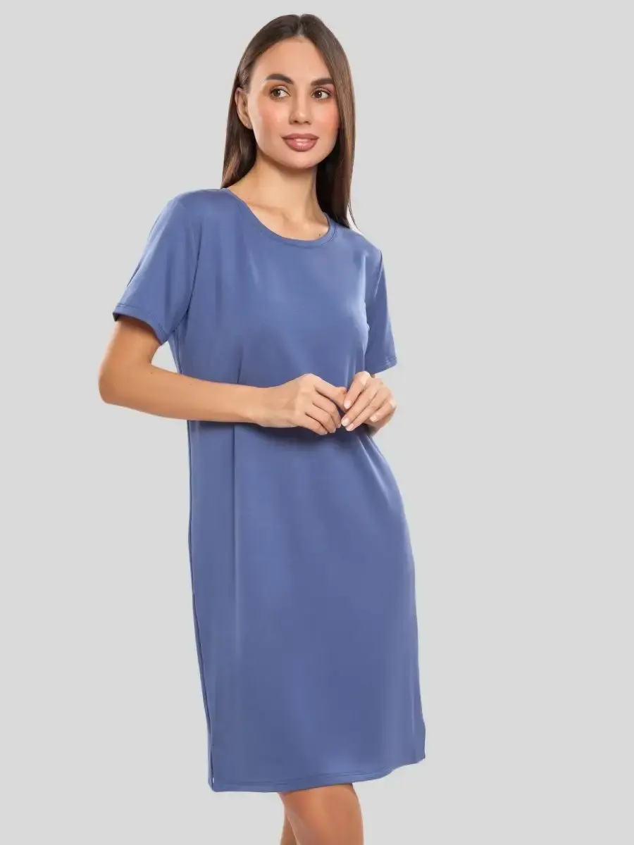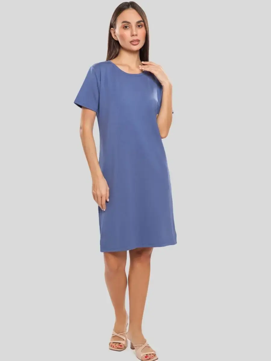 Короткий рукав добавляет платью легкость и свободу движений, а отсутствие декоративных элементов и карманов позволяет сосредоточиться на его основных качествах: комфорте и функциональности. Фактура материала плотная, что обеспечивает дополнительную поддержку и уверенность в себе.