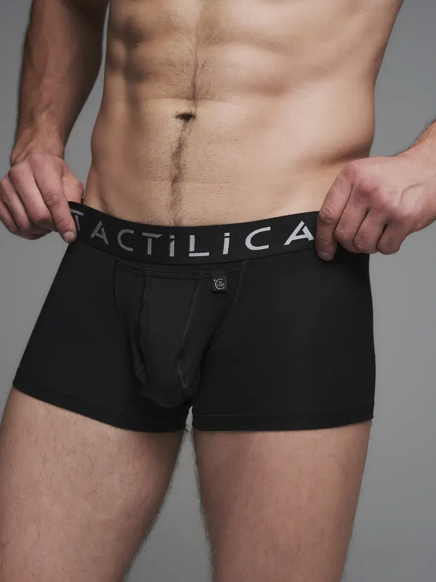 Трусы - удобная и универсальная модель мужского белья от нашего бренда TACTILICA для повседневной носки. Боксеры созданы исходя из точного соблюдения анатомии. Конструкция анатомического кармана позволяет удобно, комфортно и легко разместить органы мужской половой системы так, что полностью исключается их перегрев. Создаются наиболее физиологические условия для мужского естества. За 3-5 дней постоянного ношения решаются проблемы "неудобного положения", кожного раздражения и потливости. В течение полугода достоверно повышается базовый уровень тестостерона. Не важно, какую модель мужчина предпочитал раньше - слипы, семейные или шорты, надев трусы от нашего бренда, он больше не захочет носить обычное мужское белье. Правильно подобранные по размеру, боксеры незаметны под облегающими брюками. Благодаря широкому размерному ряду трусы шортики подойдут не только взрослым мужчинам, но и мальчикам от 13 лет. Боксеры изготовлены из тонкого натурального бамбука с добавлением малой доли эластана. Они абсолютно дышащие, гигроскопичные, не стесняют движений и обеспечивают максимальный комфорт в ежедневной носке. Бамбуковые трусы при стирке не деформируются, не подвергаются усадке и отличаются высокой устойчивостью цвета. Брендовые изделия бренда TACTILICA станут отличным подарком для мужчины на Новый год, 23 февраля и другие праздники. Наша фабрика находится в России и мы гарантируем высокое качество каждого изделия - от разработки дизайна и лекал, до кроя, пошива и упаковки.