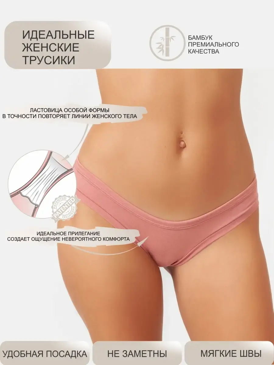 При пошиве этих трусиков используется бамбуковое волокно, которое известно своей мягкостью, комфортом и гигиеничностью. Бамбук практически не ощущается на теле, позволяя коже дышать и обеспечивая комфорт даже при активных движениях. Ткань трусиков хорошо растягивается и сохраняет свои свойства даже после многократных стирок.
